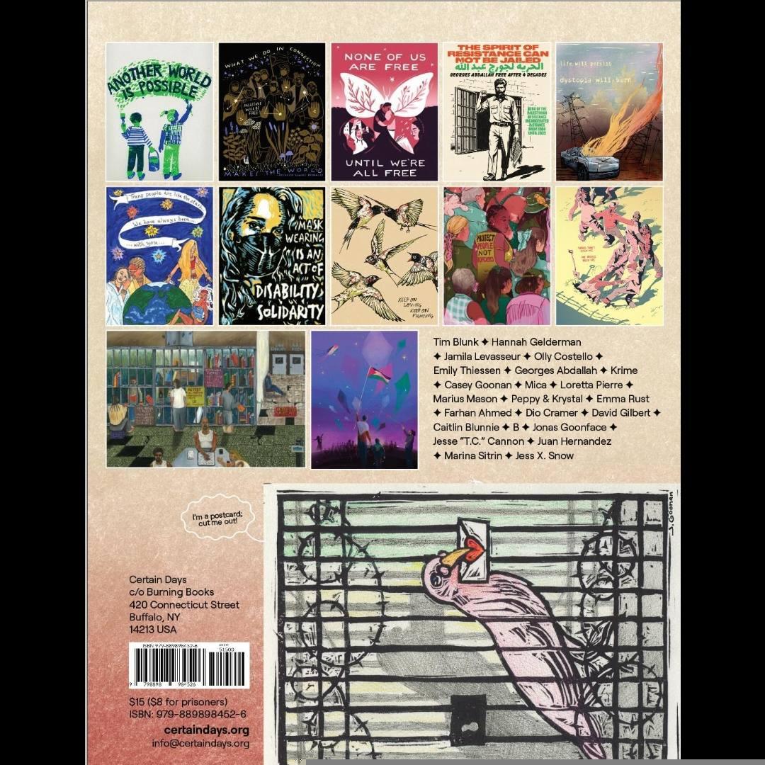 Giunto al suo 25° anno di pubblicazione, il calendario “Certain Days: Freedom for Political Prisoners” è una lettura obbligata per tutti i radicali, e tutti coloro che sostengono i prigionieri politici e si battono per la fine dell’incarcerazione di massa. Tutti i proventi andranno a sostegno dei prigionieri e di organizzazioni di base come Release Aging People in Prison (RAPP), il supporto legale di Mutulu Shakur, il fondo per il rilascio di Sundiata Acoli, il Palestinian Youth Movement, il Puget Sound Prisoner Support, la Coalition to Decarcerate Illinois, gli Appalachians Against Pipelines, la Community Resource Initiative-CA, il Circolo P4W Memorial Collective Prisoners’ Justice Day, il Wet’suwet’en Solidarity Fund, i Cascadia Forest Defenders e NorCal Resist. Ogni calendario contiene 11 saggi stimolanti e 12 splendide opere d’arte. Vi sentirete ispirati ogni giorno dell’anno, con date storiche di eventi radicali e tanto spazio per i vostri progetti.